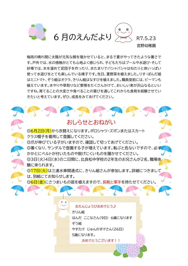 6月のえんだより