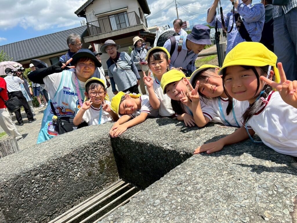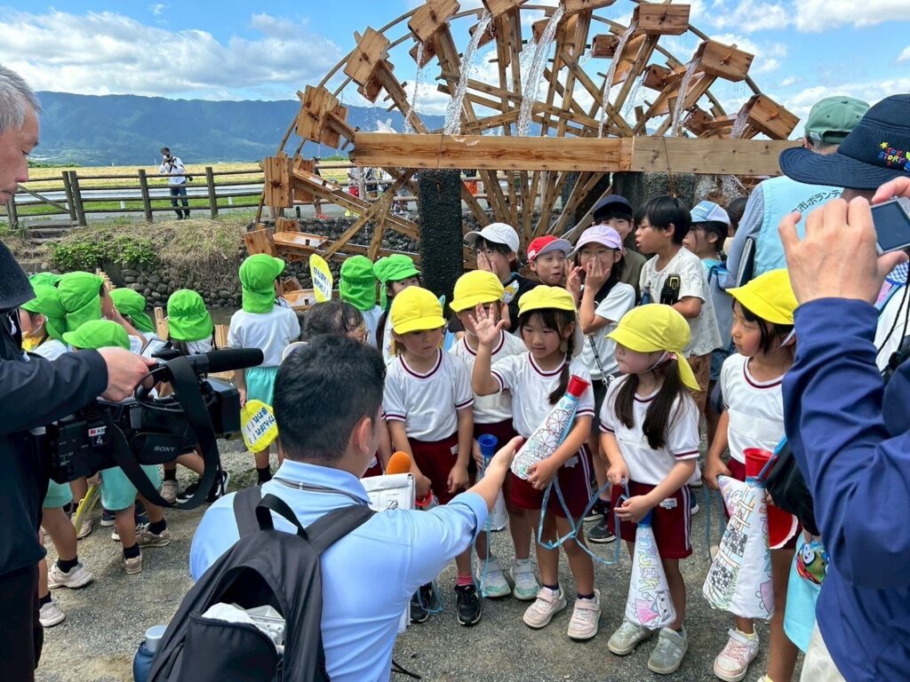 「6月17日(火)、三連水車の開通式に年長児(きりん組さん)が参加しました。